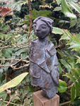 2 beelden van Lieuwke Loth in de botanische tuin samen met andere kunst, 2 beelden in de arcadische tuin